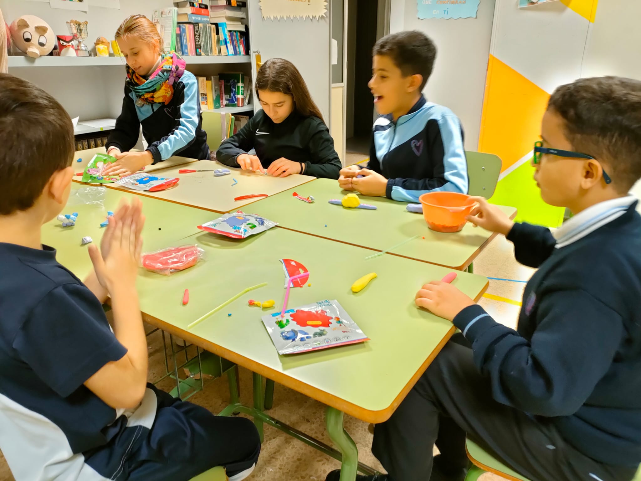 Una masa de colores sin tema, ni normas ni directrices: sólo los niños y su imaginación. Hemos disfrutado mucho y el resultado ha sido espectacular.