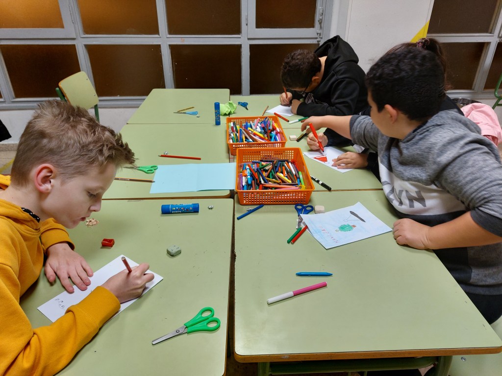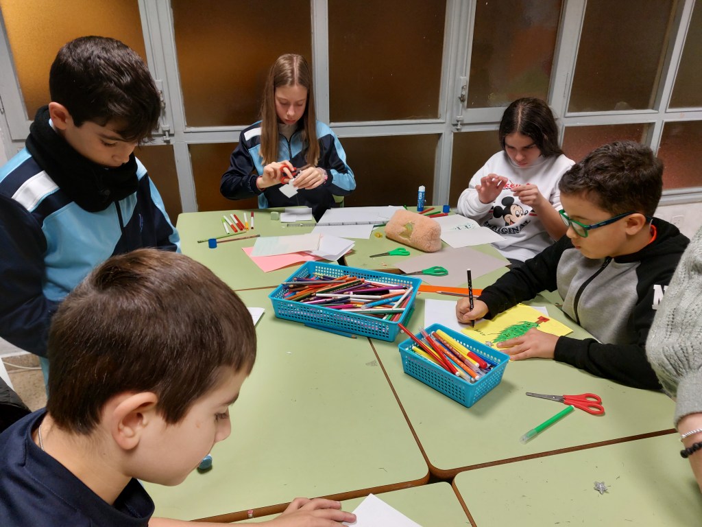 Hoy hemos creado unas tarjetas navideñas para el concurso de Lagundu. Lo único obligatorio era…poner una estrella plateada, el resto de materiales o composición eran libres. Y…sí. Los chicos/as de Lagundu han vuelto a sorprendernos con su imaginación.