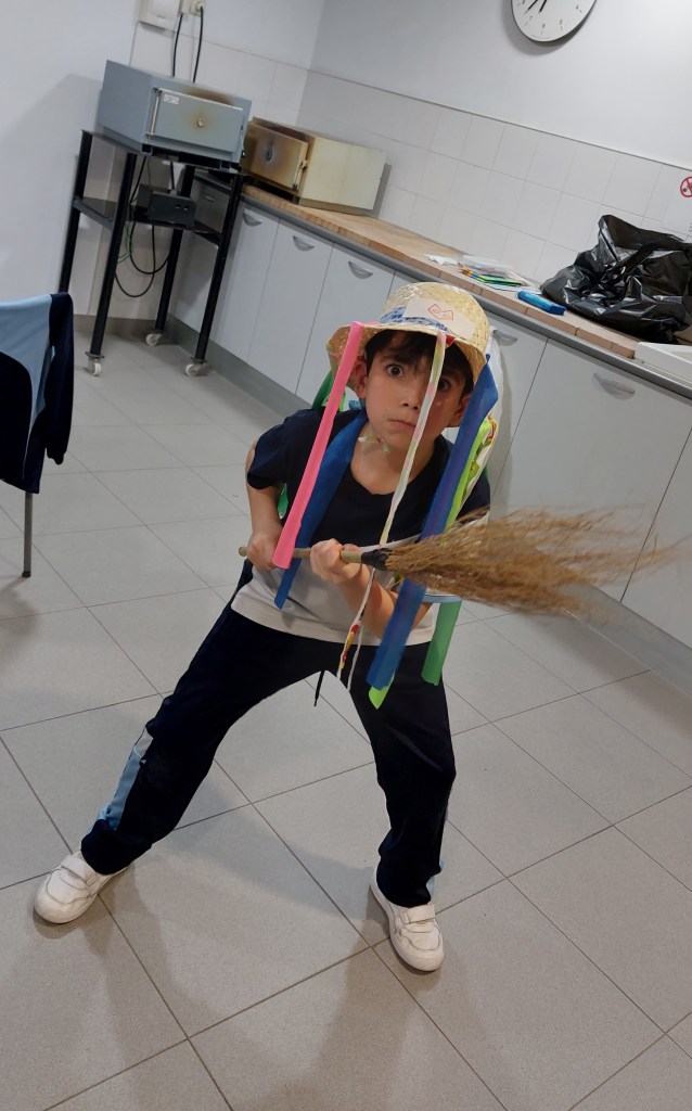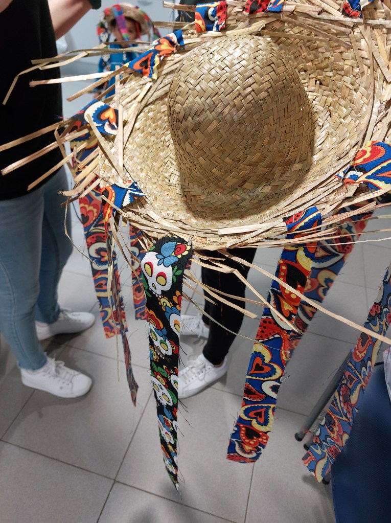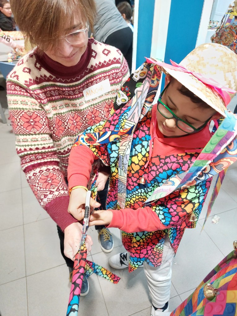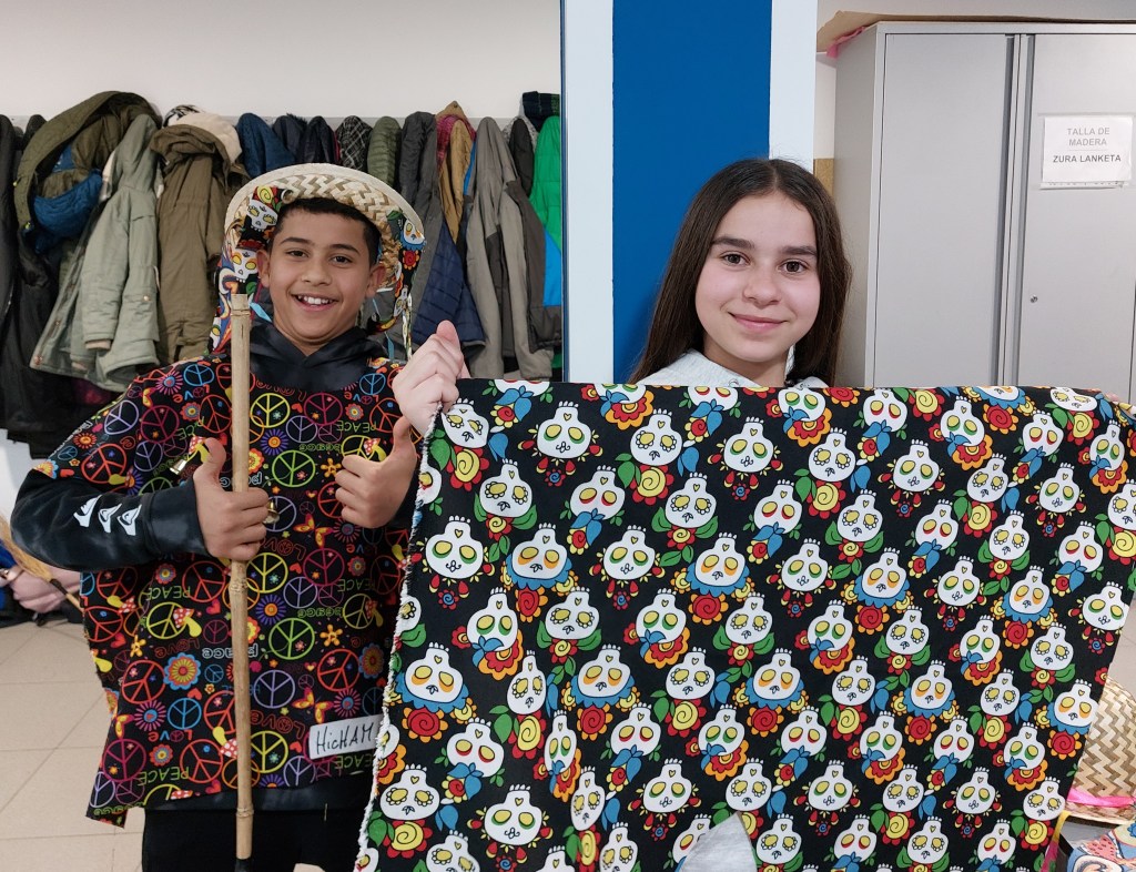 Nuestro viernes estuvo lleno de color. Seguimos con las actividades de preparación del carnaval en la casa de cultura de Burlada y está vez hemos fabricado nuestros propios disfraces.