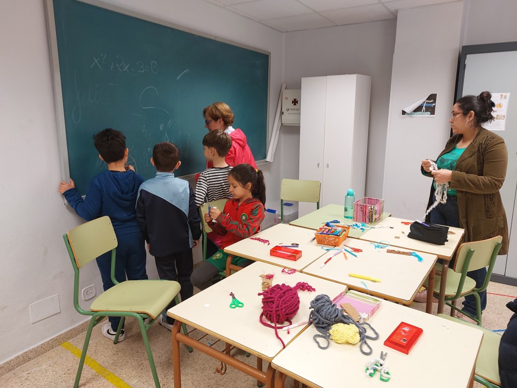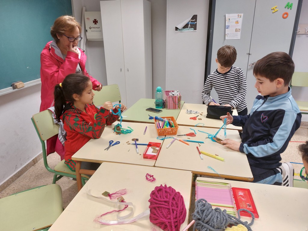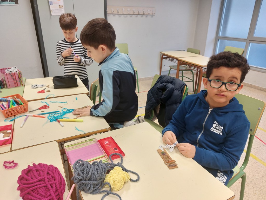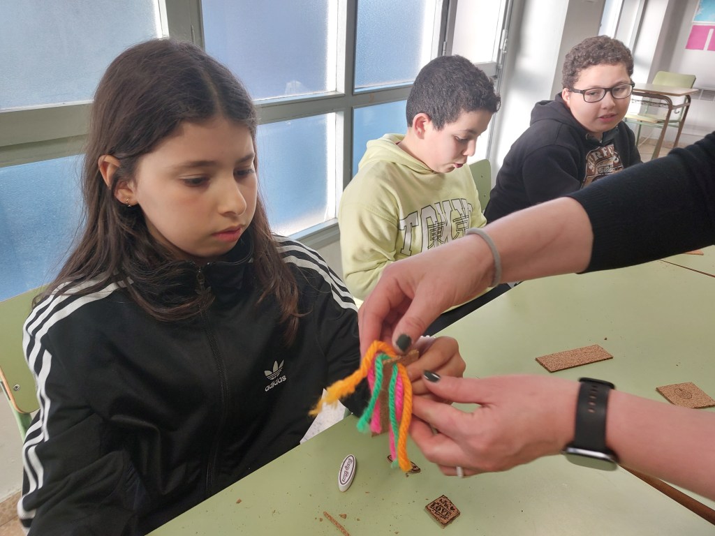 Hemos utilizado un material muy especial, el corcho, que requiere delicadeza y precisión para que no se rompa y nuestros artistas de Lagundu han aprendido a manipularlo a la perfección. Los mayores también han utilizado sellos de tinta muy especiales.