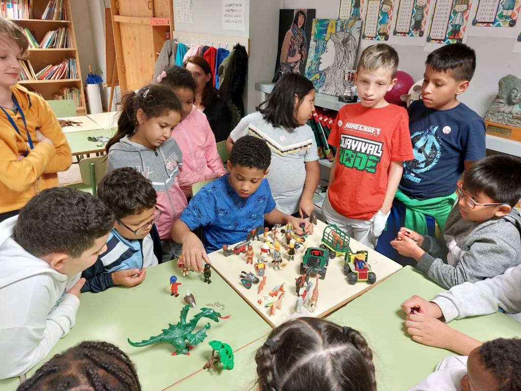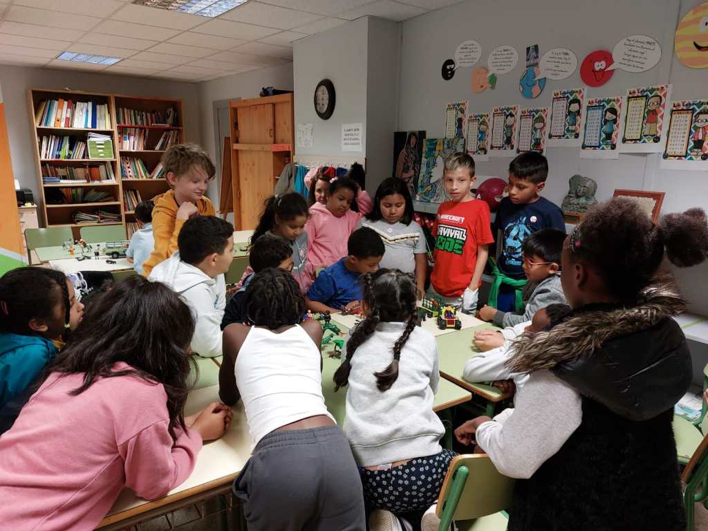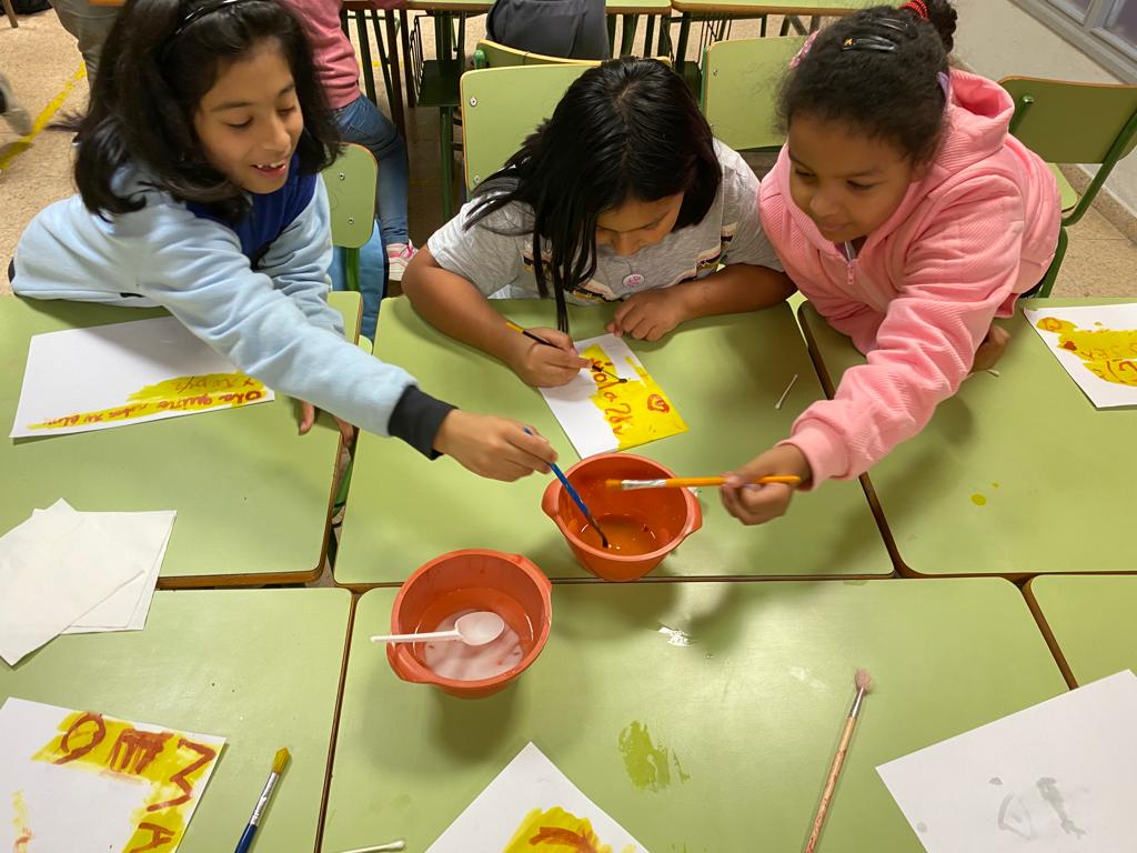 El viernes disfrutamos con la actividad de ciencia divertida: creando tinta invisible y escribiendo un mensaje a nuestro compañero/a de la derecha. Después, la hacíamos aparecer con una mezcla de cúrcuma e hidrogel. Después, hicimos un juego colaborativo. Cada grupo tenía que pensar una historia con los juguetes que les habían tocado. Al terminar, lo exponían a los demás. Lo hemos pasado genial, y a la vez aprendemos.