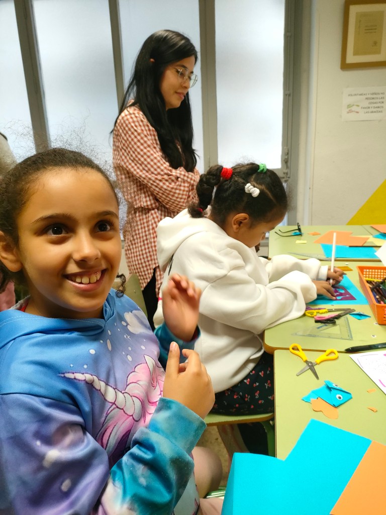 Por la tarde, tuvimos Viernes en Lagundu. Primero, hicimos una manualidad muy chula: puntos de libro con papel. Nos gustó mucho la actividad y pudimos hacer varios puntos de libro con formas de animales.