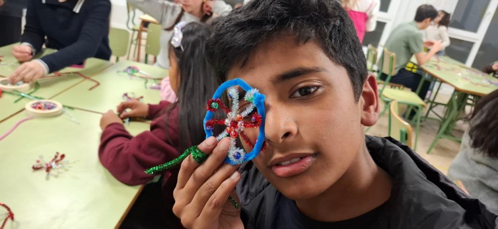Disfrutamos de una riquísima merienda familiar y hicimos manualidades navideñas: adornos para colgar en el árbol, en casa o en la mochila…