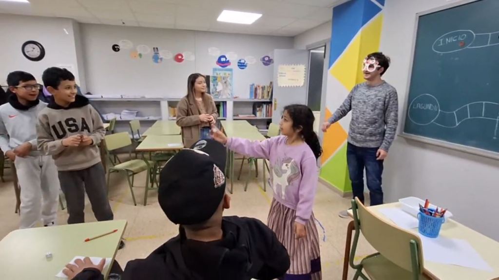 Ayer jugamos a la oca gigante, moviendo las piezas por el «tablero» y superando diferentes pruebas para poder mantenernos en cada casilla.