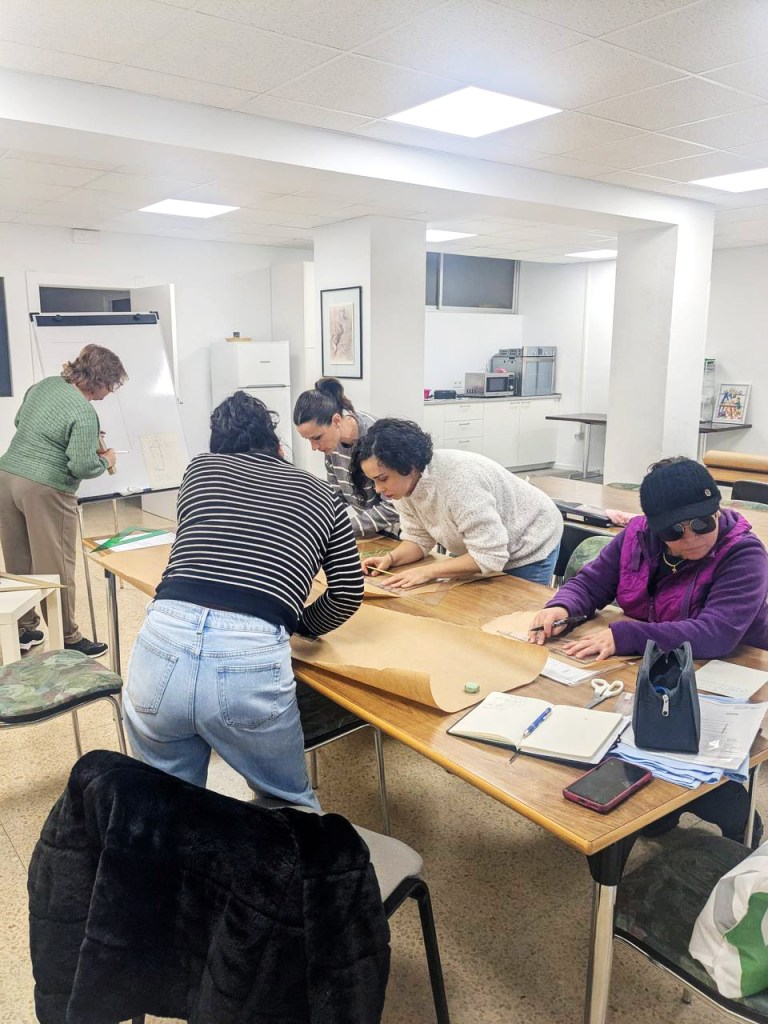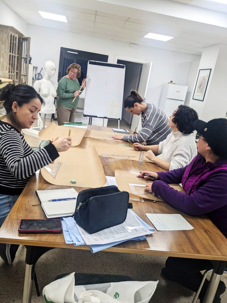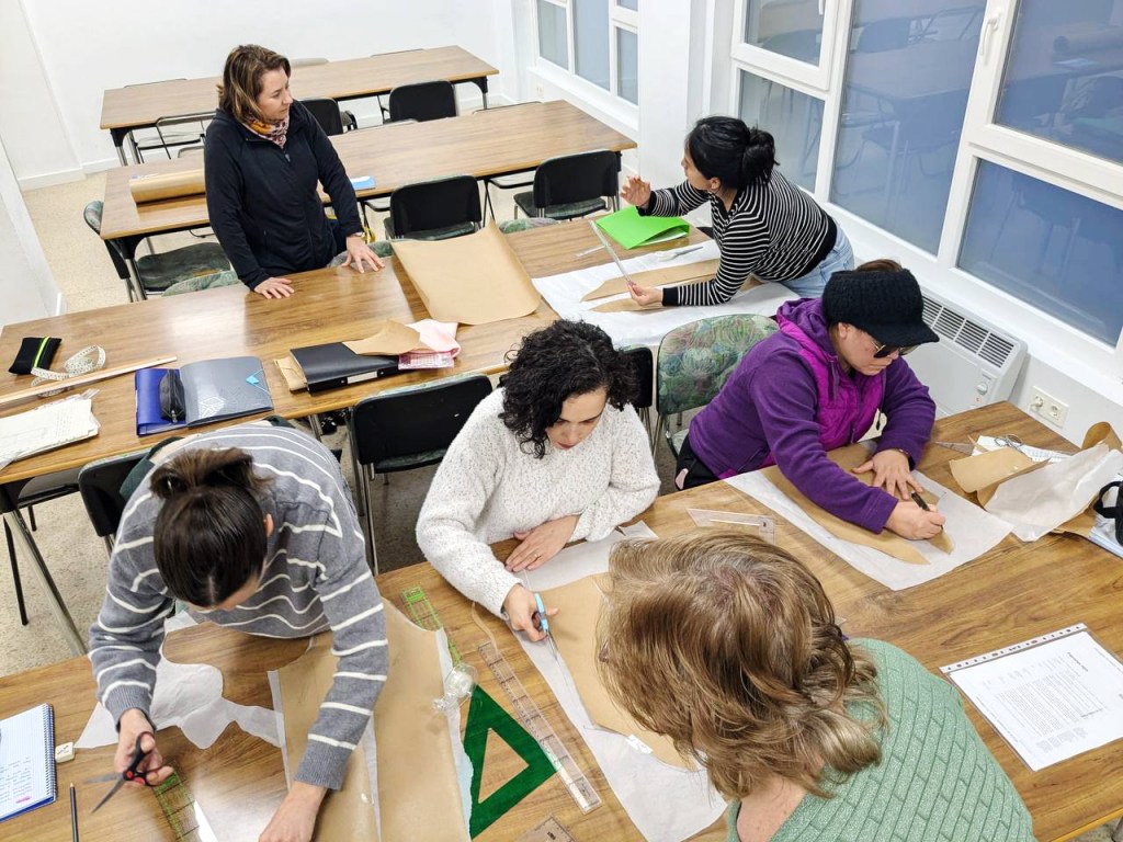 Hoy, en clase, las participantes más avanzadas han dado un paso más y han empezado a trabajar el patronaje, aprendiendo a tomar medidas, interpretar patrones y dar forma a nuevos proyectos.